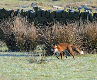 On Saturday morning January 29th we had the pleasure of watching four foxes for nearly four hours close to home. There appeared to be some sort of territorial behaviour going, with field boundaries being patrolled, and scent marking taking place. January is the peak of the mating season and also the time that last year’s litter will be forced to disperse by the parents if they are still in the family group. There didn’t seem to be any conflict between any of the four foxes but it seems likely that one of the foxes was a female attracting the attentions of at least a male. Were the other two foxes last years litter or rival males? Hopefully they will put further displays in the next few days and reveal more about their lives, maybe even revealing the location of this years den?